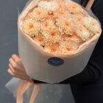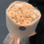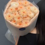 Возможность заказать букет из 5 персиковых хризантем. Быстрая доставка по городу.