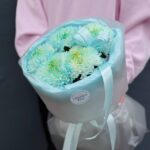 Этот букет оформлен в стильной сумке-переноске, что делает его удобным для транспортировки и хранения. Каждая хризантема в этом букете — это символ нежности, любви и благодарности.